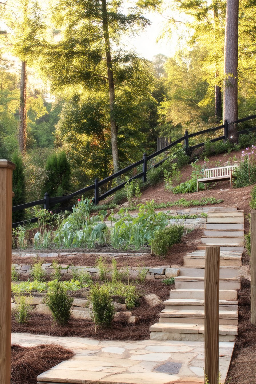 - Embrace terracing: Create distinct levels in your garden by building terraces. This not only helps in managing steep slopes but also provides unique areas for planting various types of vegetation.