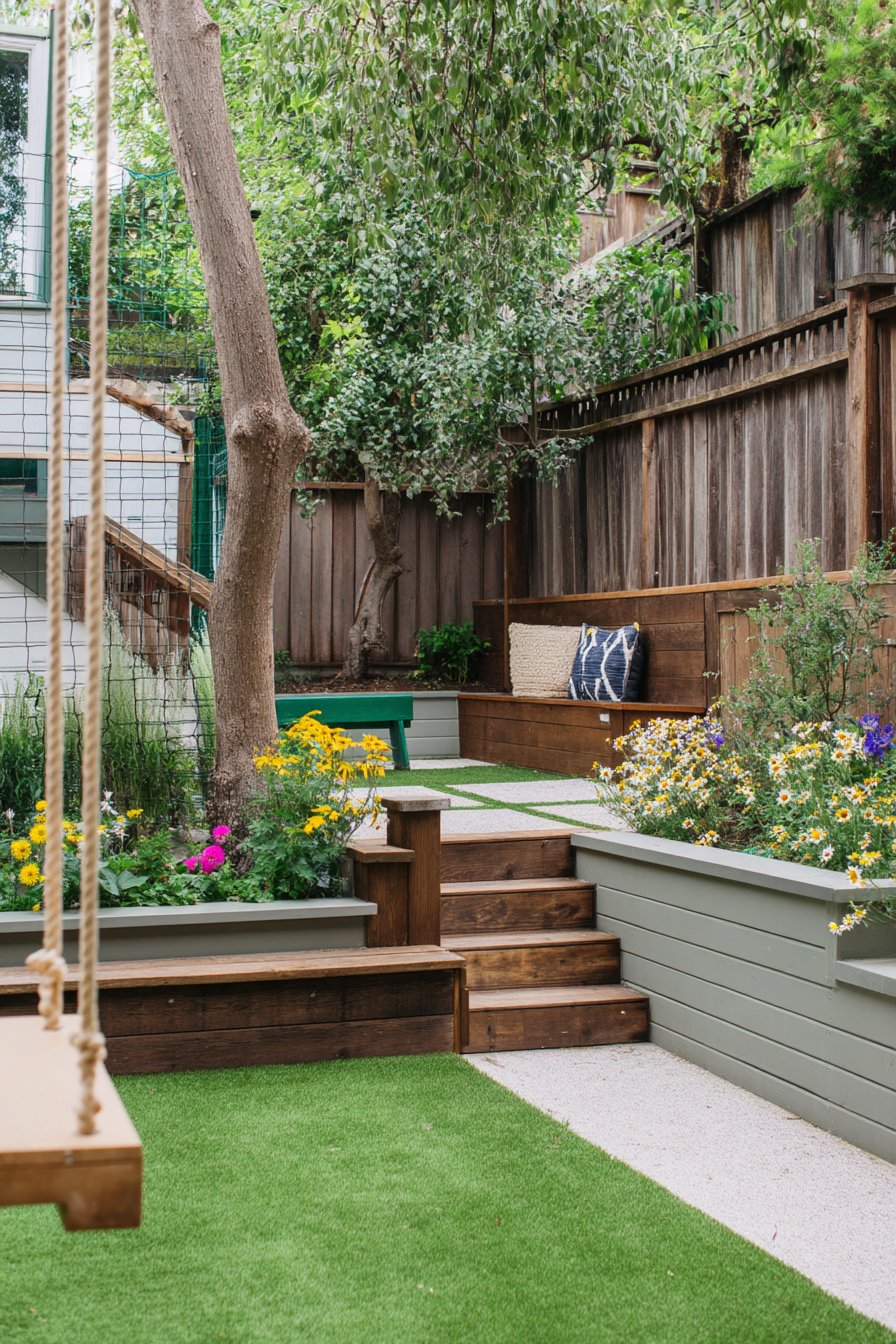 - Incorporate seating areas: Create cozy seating areas at various levels to encourage relaxation and enjoyment of the garden. Use benches, swings, or even stone seating to complement different height zones.