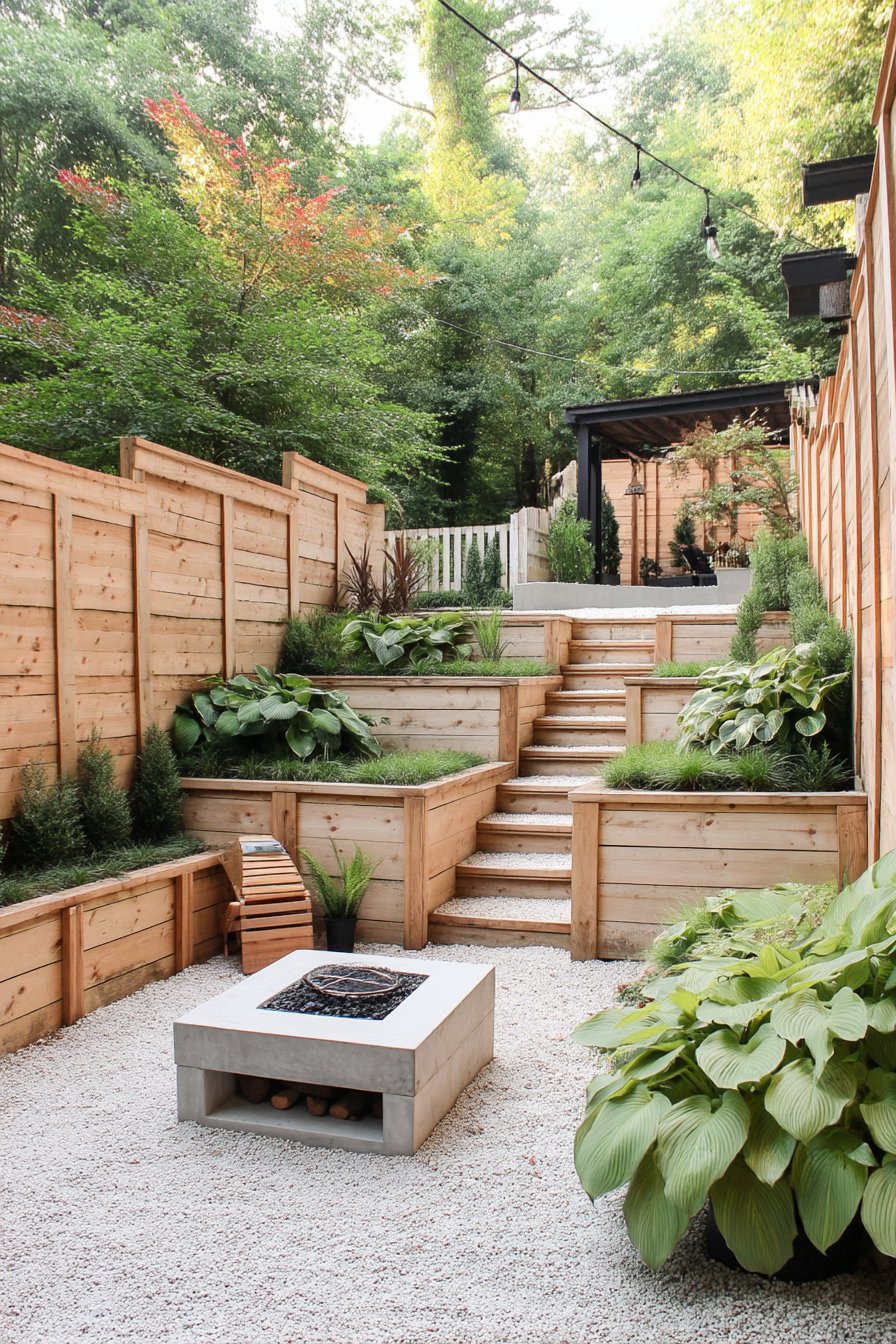 3) Modern Tiered Hosta Retreat Garden