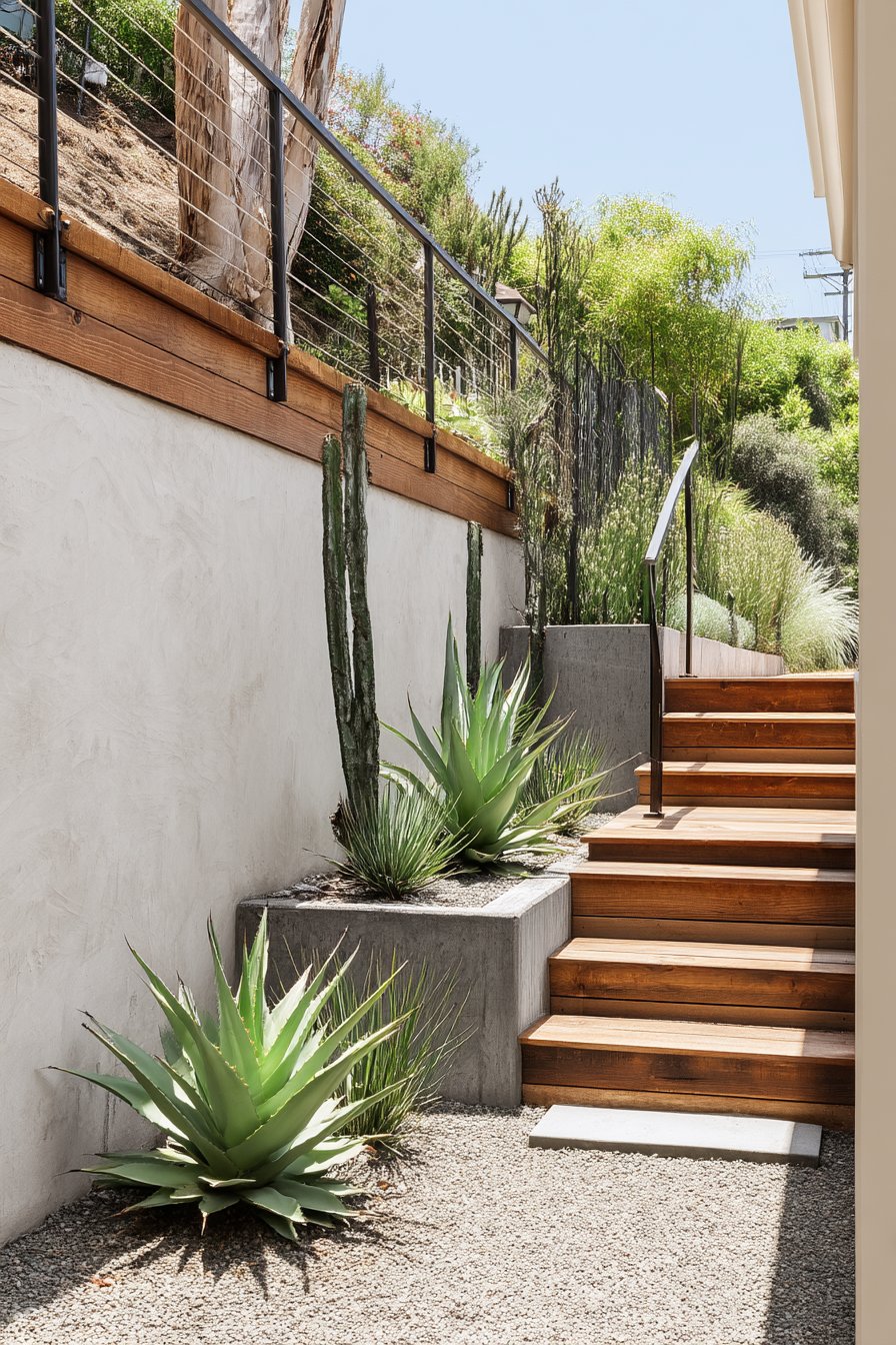 9) Modern Desert-Inspired Staircase Garden