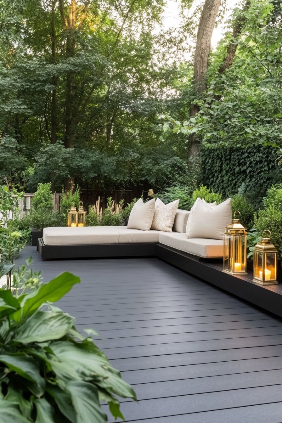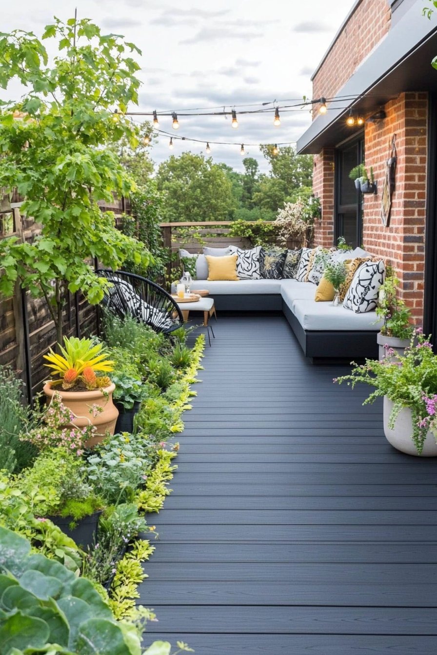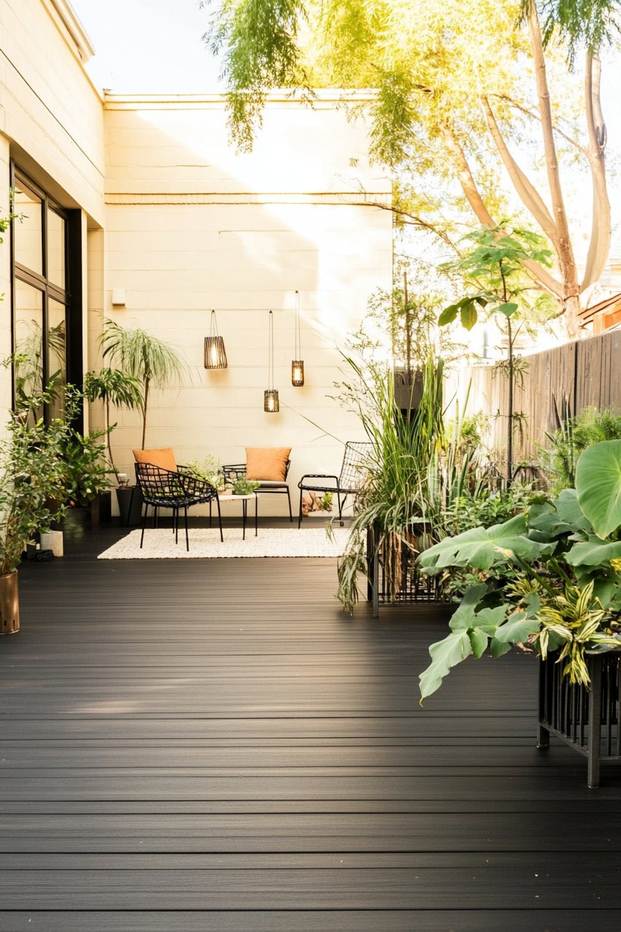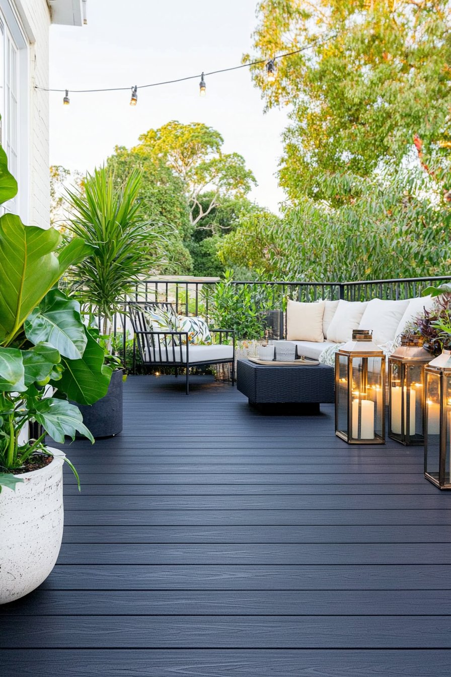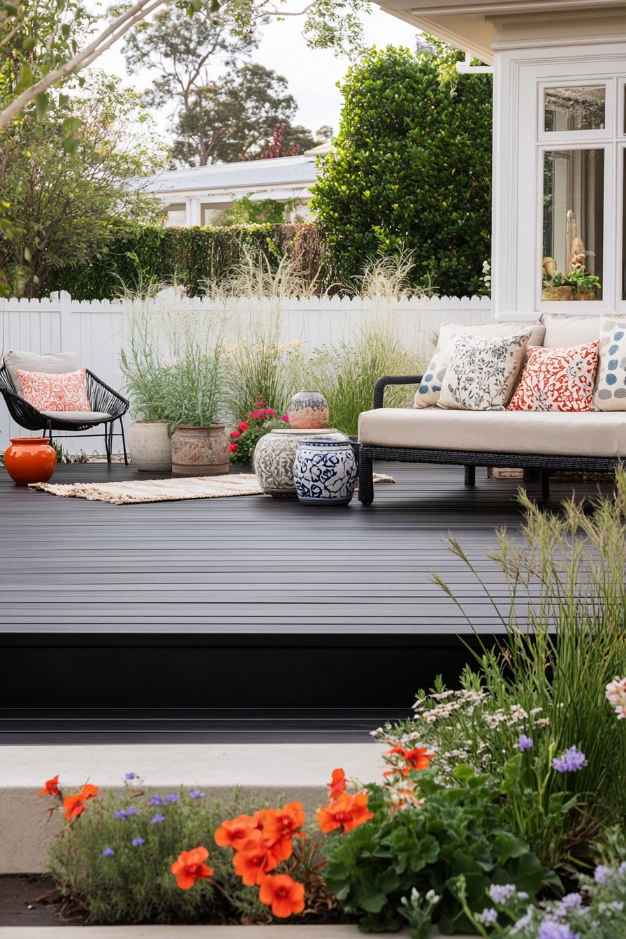 - Select Bold Outdoor Furnishings: Choose furniture and accessories that sport vivid colors or patterns to energize the space and prevent the dark decking from feeling too heavy.