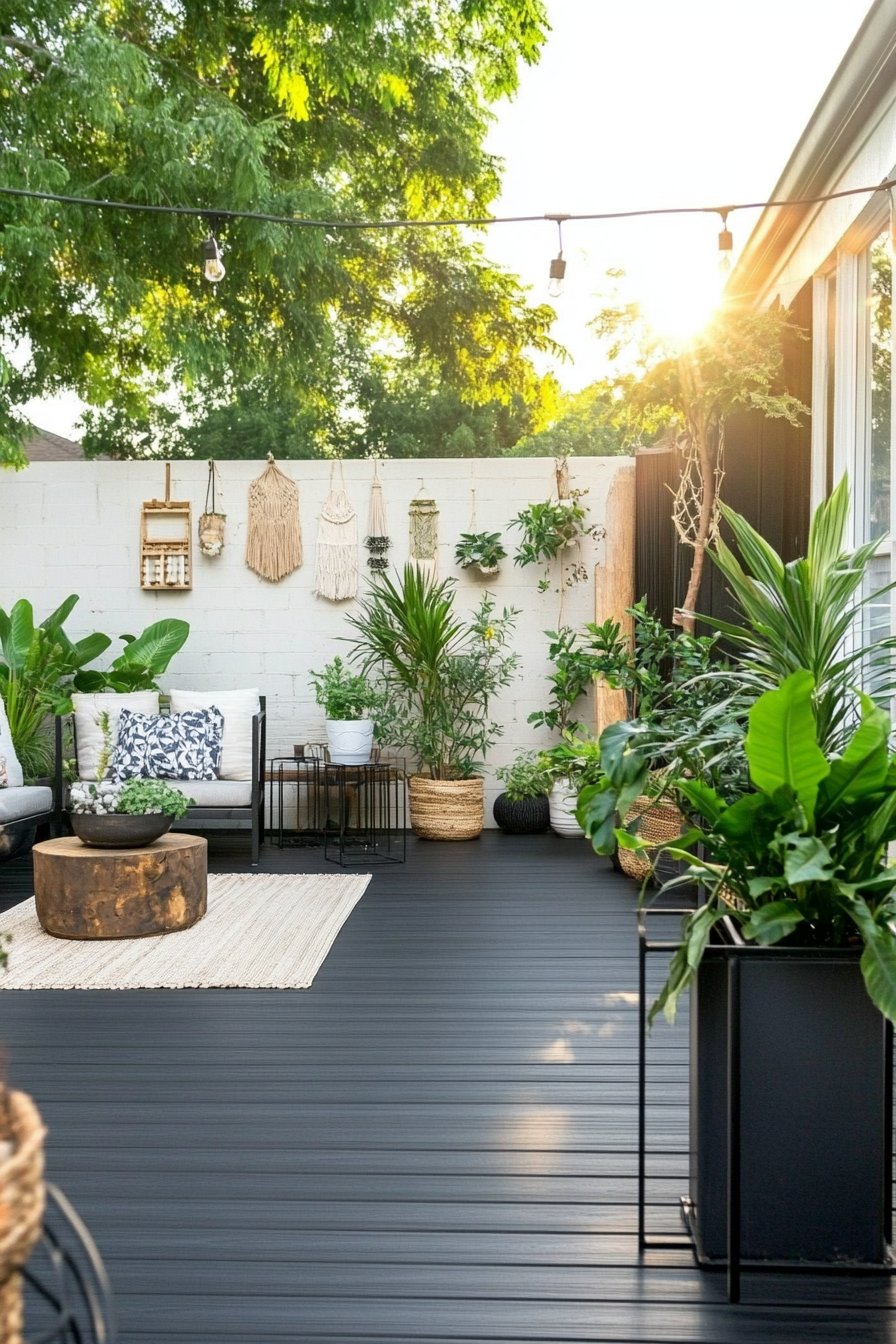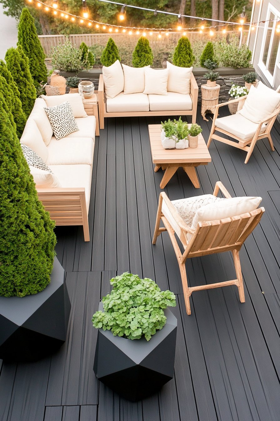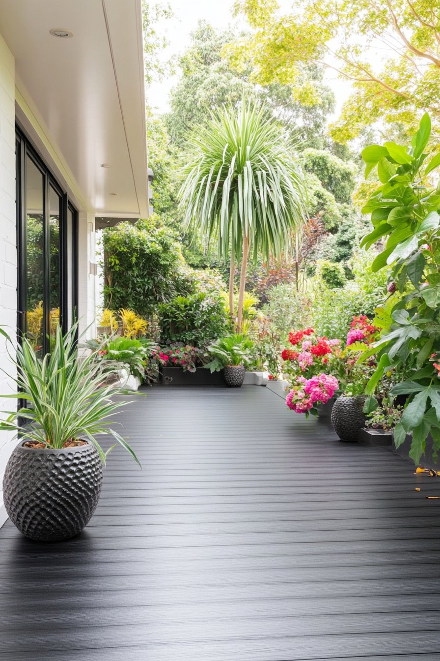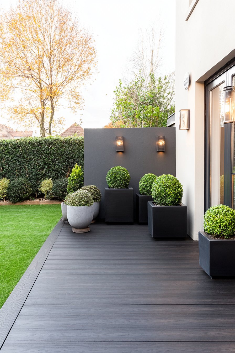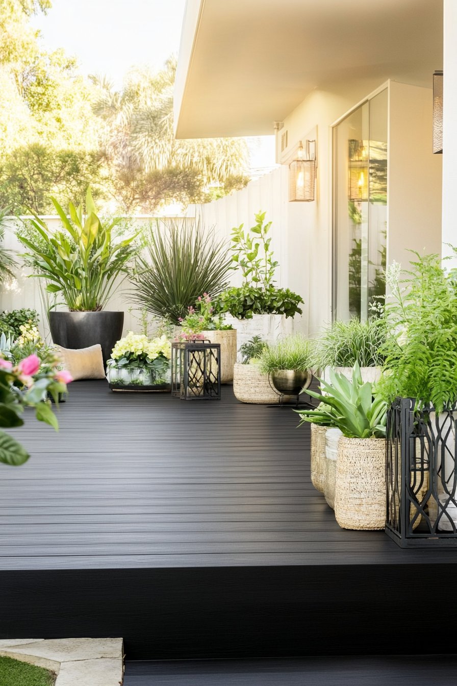 - Incorporate Greenery Smartly: Position strategically placed plants or vertical gardens to soften the starkness of the black decking and add natural vibrancy.