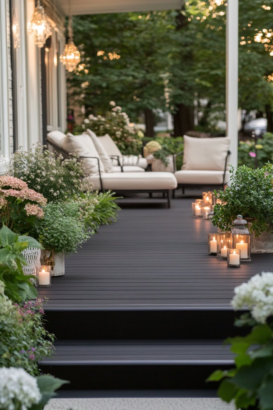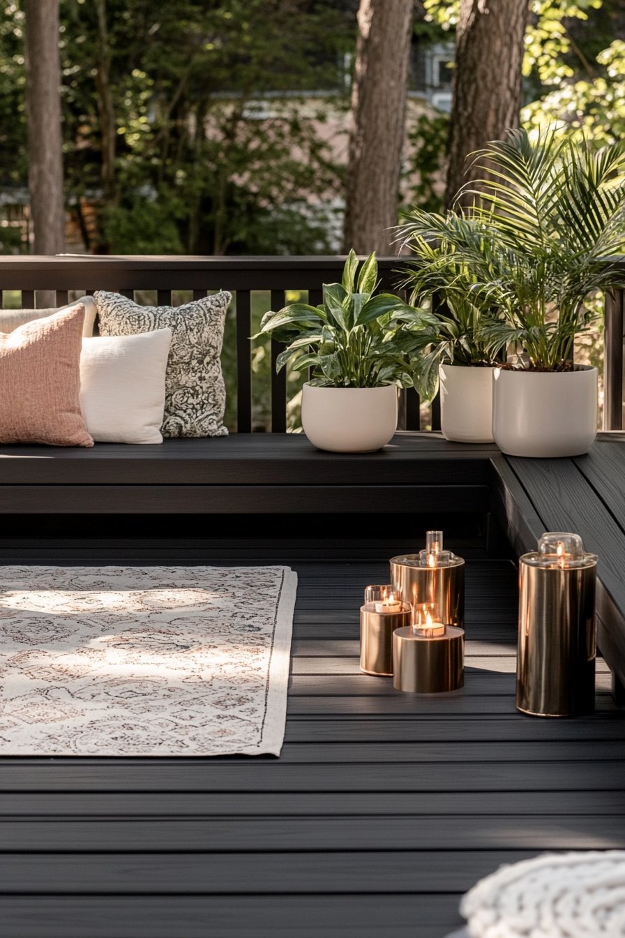 - Contrast with Lighter Accents: Use lighter colored furniture, planters, or decor elements to create a striking contrast against the dark deck tones.