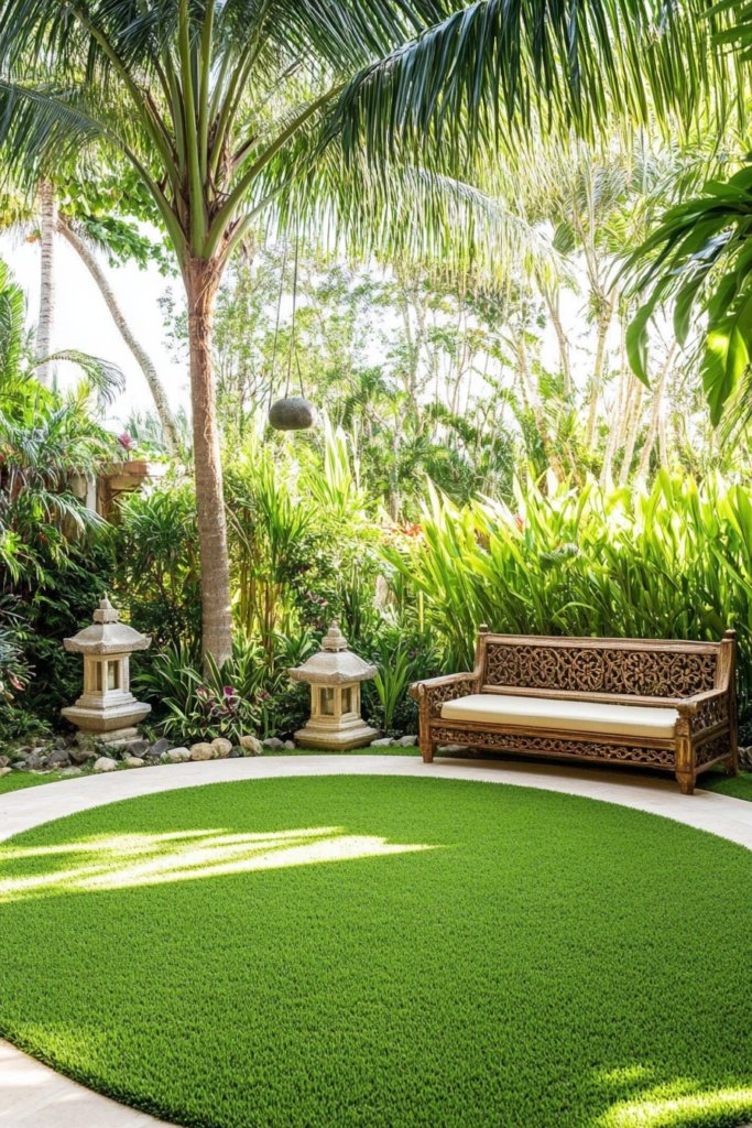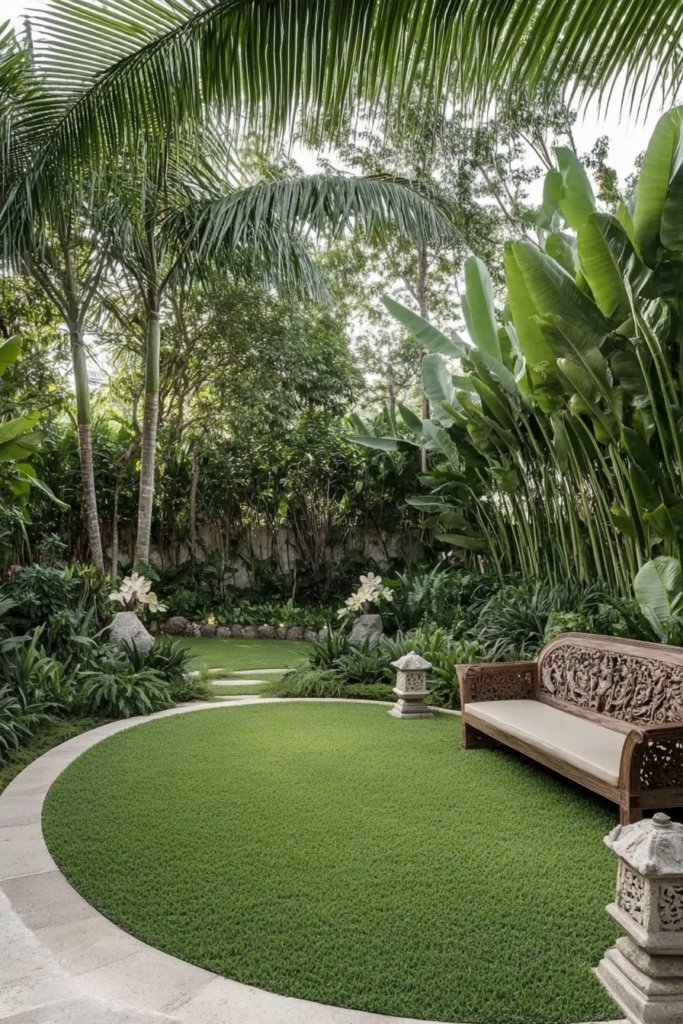 1. Balinese-Inspired Garden with Circular Lawn
