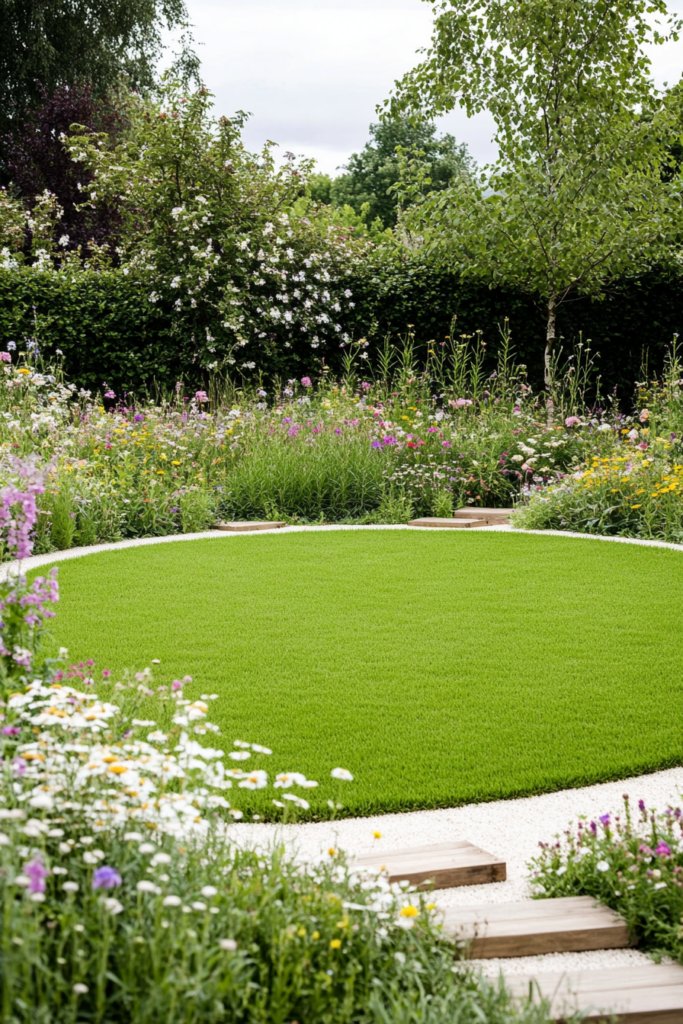 10. Meadow-Inspired Garden with Circular Lawn