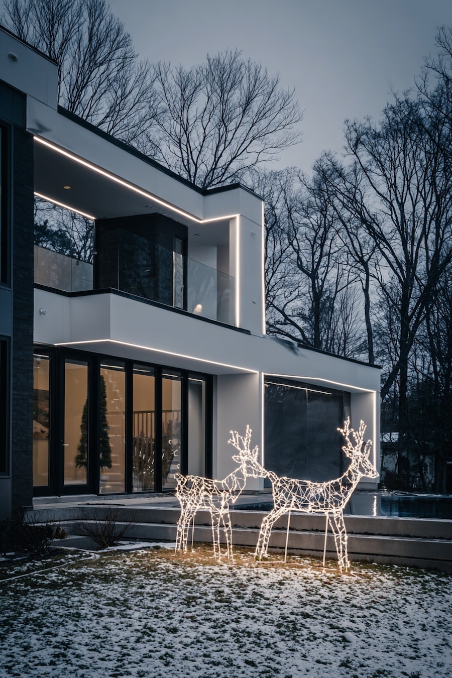 I love how these warm, wire-frame reindeer feel both modern and cozy. The clean, linear lights echo the house’s architecture so it all reads like a single, chic idea rather than a holiday overload.