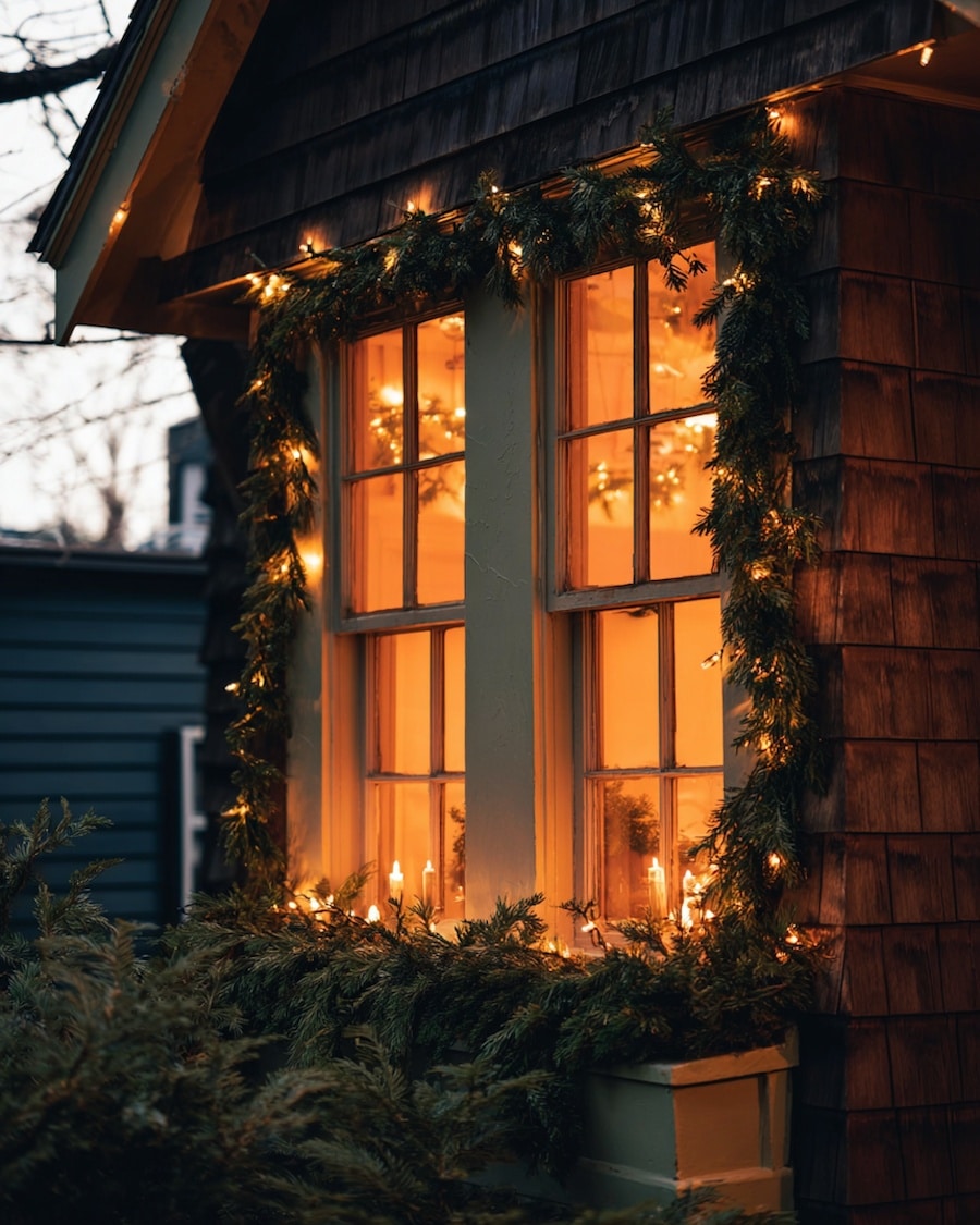 This look is perfect for cottages, bungalows, and anything with a window box or porch ledge where you can pile on greenery and let the lights peek through. It reads classic and a little nostalgic, and yes, it absolutely gives main character energy.
