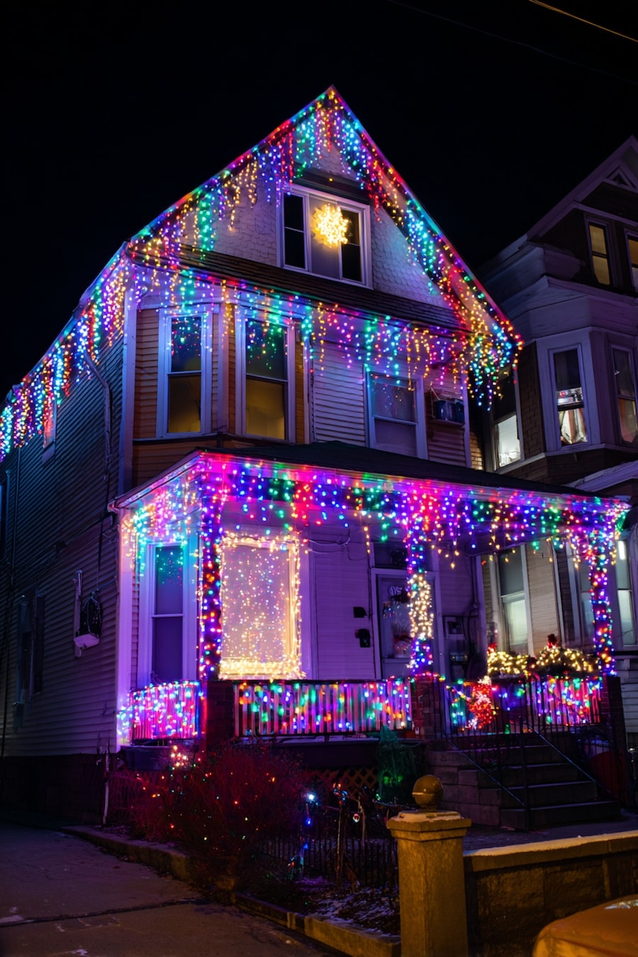 It works amazingly well on older homes with porches and lots of trim to hang things from, and in neighborhoods where maximal sparkle is basically the holiday language. If you prefer calm, minimalist vibes, this might feel a bit much.