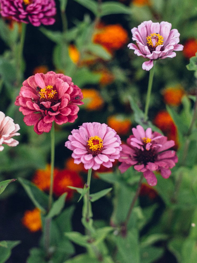 • Benary’s Giant: Tall, robust plants with large double blooms in a wide color range—excellent for cutting and attracting butterflies. (Zones 3–10)