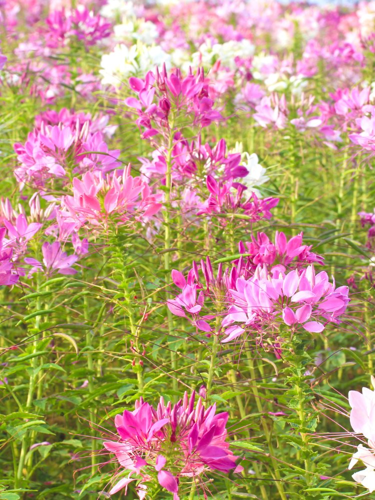 Cleome prefers full sun and well-drained soil, and they can tolerate some drought once established. They add height and a soft, whimsical touch to flower beds.