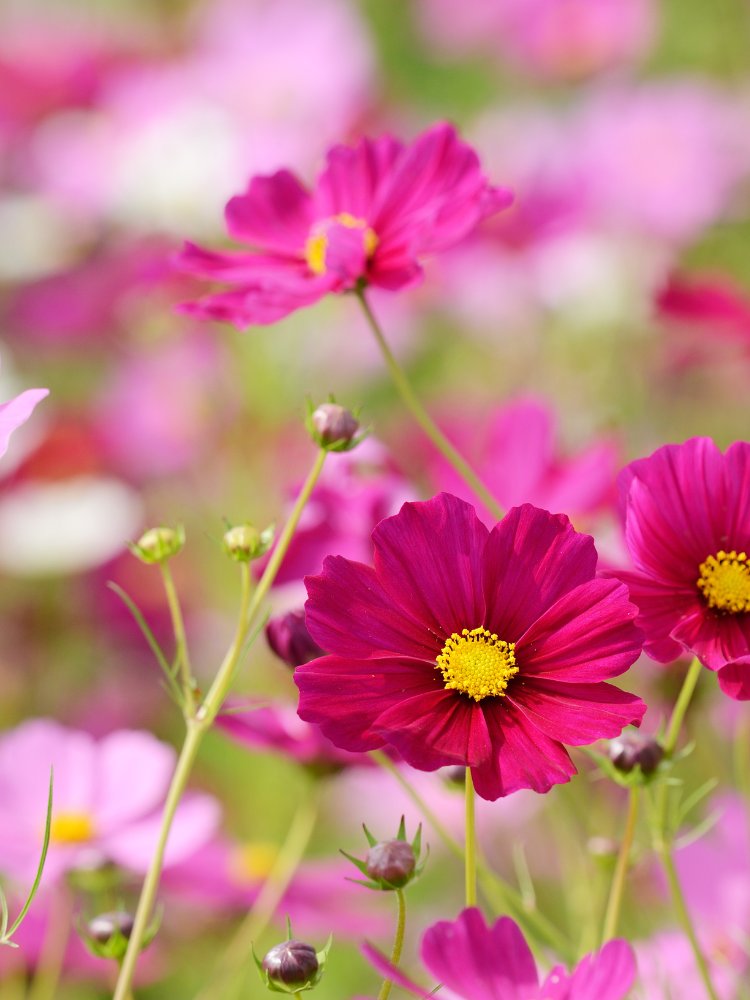 • Sensation Mix: Tall, airy plants with large single blooms in pink, white, and crimson—ideal for wildflower gardens and cutting. (Zones 2–11)