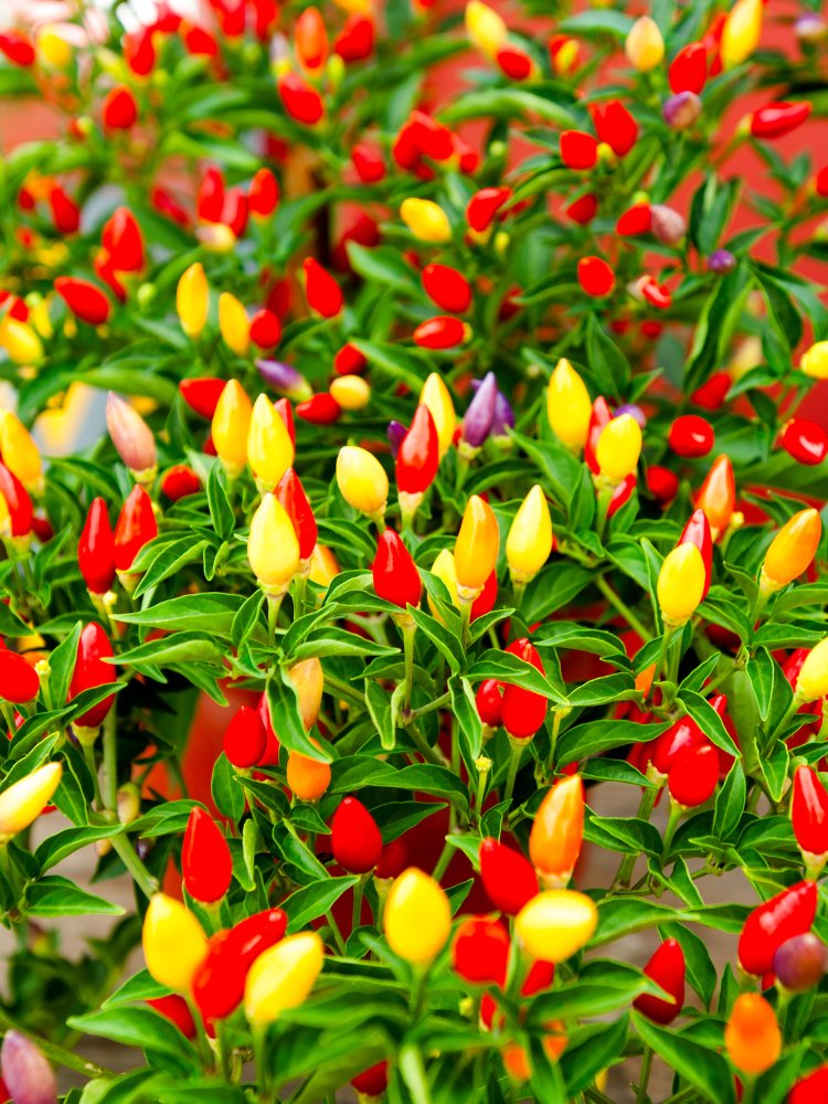• Bolivian Rainbow: Multicolored peppers in shades of purple, orange, yellow, and red—adds a festive look to containers. (Zones 9–11)